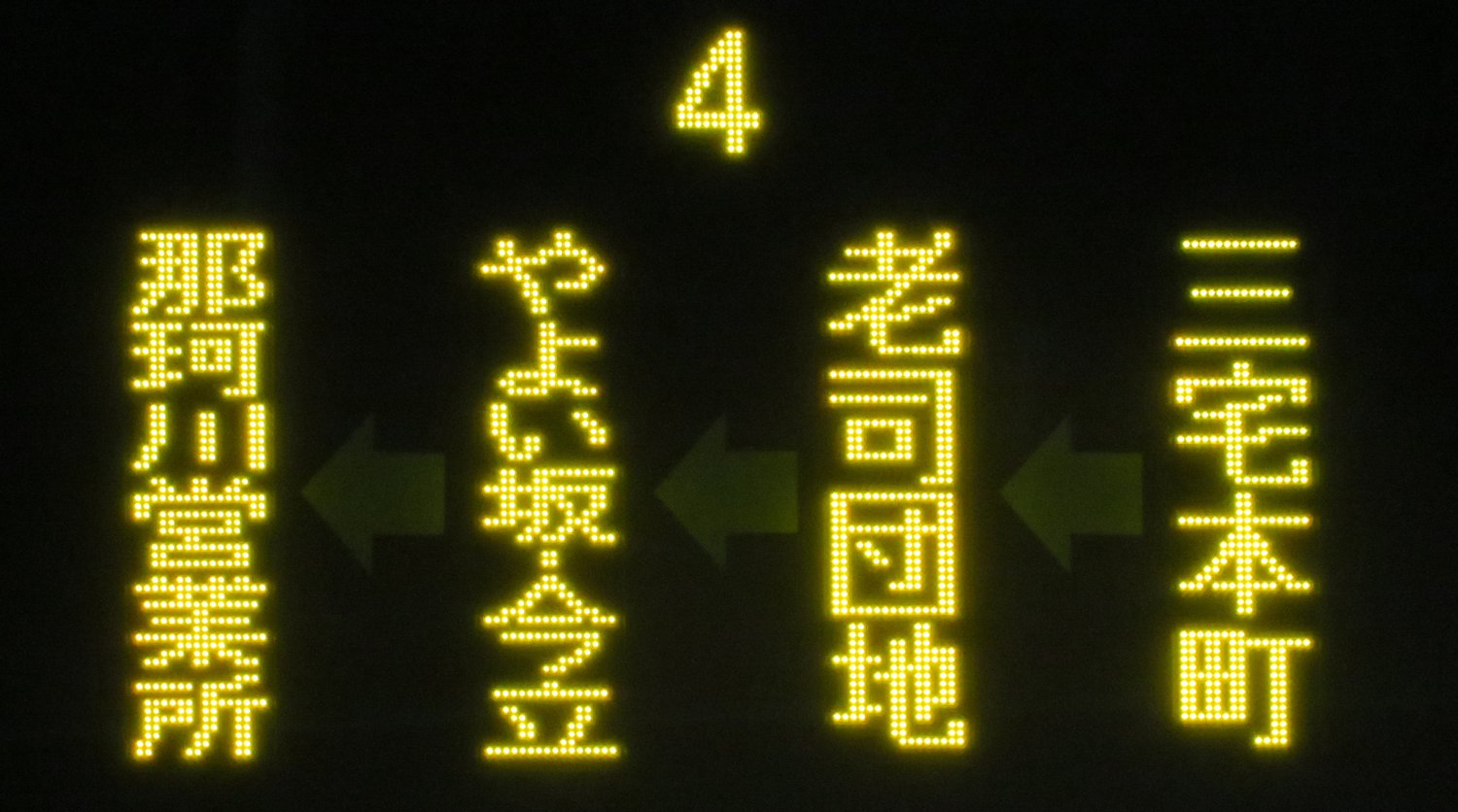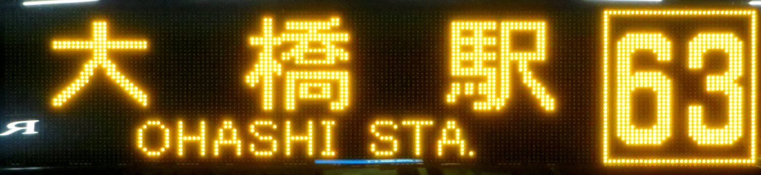 | 現存 |  | 行先: 63 西鉄大橋駅 経由地: 表示区間: 美野島南公園前→西鉄大橋駅 撮影日: 2019-11-25 公開日: 2020-06-02 撮影者: nnr_1510 備考: ローマ字表記あり(OHASHI STA.)