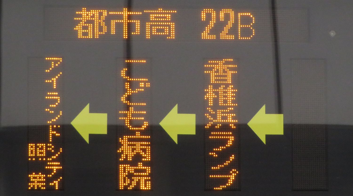 | 現存 |  | 行先: 22B 都市高 アイランドシティ照葉 経由地: 香椎浜ランプ,こども病院 表示区間: 天神中央郵便局前(18)?→蔵本(昭和通) 撮影日: 2019-04-12 公開日: 2019-05-11 撮影者: nnr_1510 備考: ★