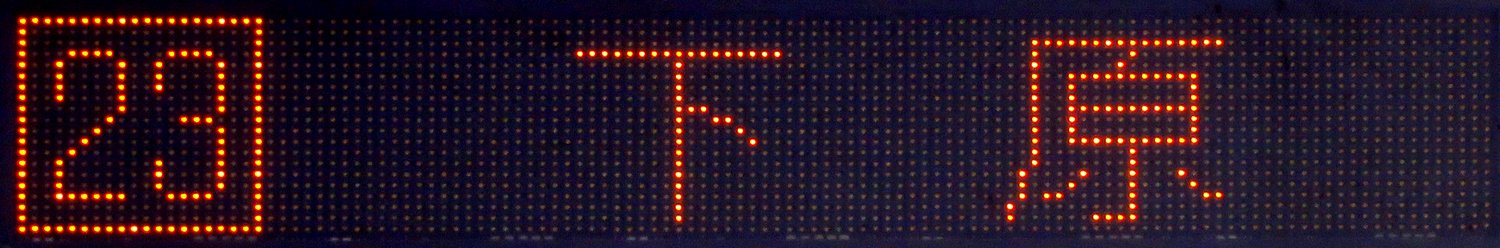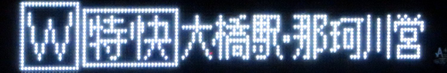 | 現存 |  | 行先: W 特快 那珂川営業所 経由地: 大橋駅 表示区間: 天神ソラリアステージ前(7)→清水町(大橋・那珂川方面) 撮影日: 2019-11-16 公開日: 2020-05-27 撮影者: nnr_1510 備考: ★夜3本のみ/福岡都心BRT/白色LED/中点表記