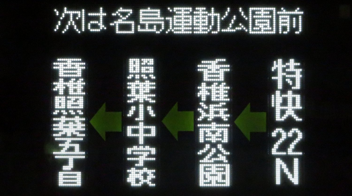 | 現存 |  | 行先: 22N 特快 香椎照葉五丁目 経由地: 特快22N,香椎浜南公園,照葉小中学校 表示区間: 蔵本(昭和通)Bのみ 撮影日: 2019-11-16 公開日: 2020-05-28 撮影者: nnr_1510 備考: ★夜3本のみ/福岡都心BRT/白色LED/行先番号縦表記/次停留所案内:次は名島運動公園前