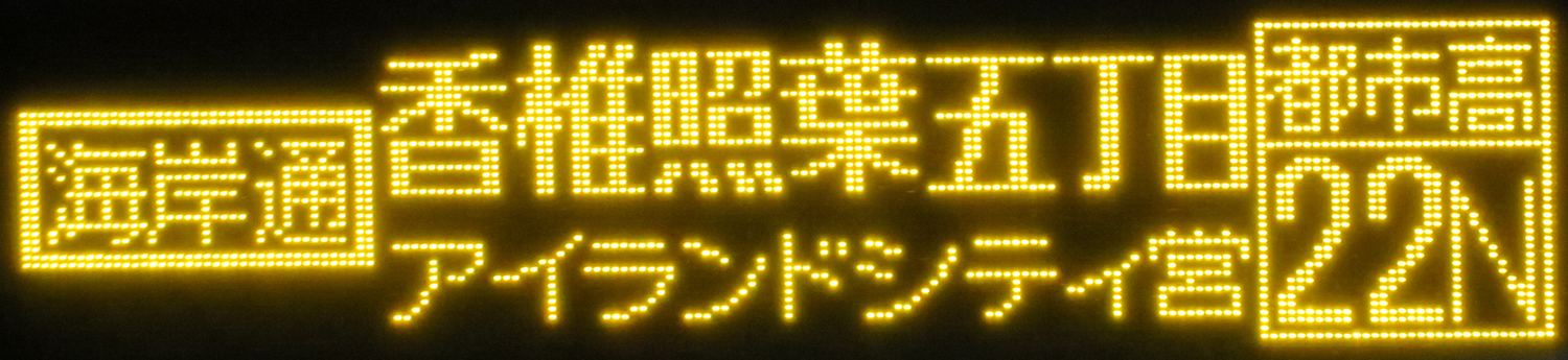 | 現存 |  | 行先: 22N 都市高 海岸通・香椎照葉五丁目 経由地: 海岸通 表示区間: 天神中央郵便局前(18)→蔵本(昭和通)B 撮影日: 2019-03-20 公開日: 2019-05-05 撮影者: nnr_1510 備考: 香椎浜海岸通り経由便/「海岸通」囲み表記/「アイランドシティ営」表記