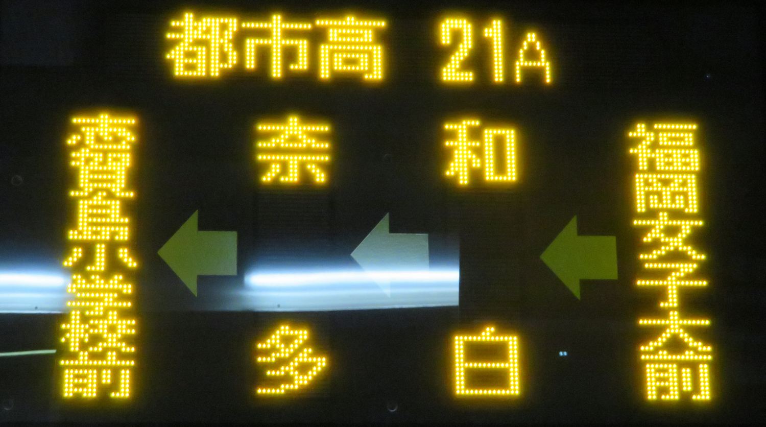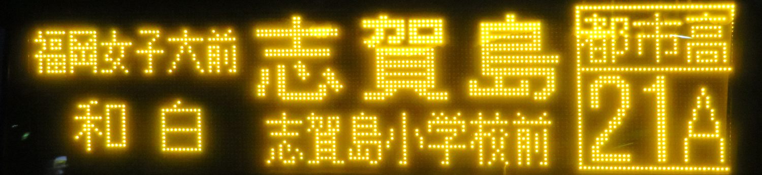 | 現存 |  | 行先: 21A 都市高 志賀島小学校前 経由地: 福岡女子大前,和白,奈多 表示区間: 天神中央郵便局前(18)→蔵本(昭和通)B 撮影日: 2019-03-20 公開日: 2019-05-05 撮影者: nnr_1510 備考:
