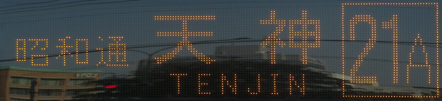 | 現存 |  | 行先: 21A 天神三丁目(15) 経由地: 昭和通 表示区間: 蔵本(昭和通)A→天神三丁目(15) 撮影日: 2019-03-27 公開日: 2019-05-05 撮影者: nnr_1510 備考: