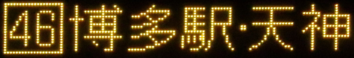 | 現存 |  | 行先: 46 天神北(3) 経由地: 博多駅 表示区間: 井尻六ツ角→駅南二丁目 撮影日: 2019-12-02 公開日: 2020-06-20 撮影者: nnr_1510 備考: 中点表記