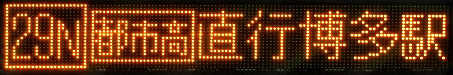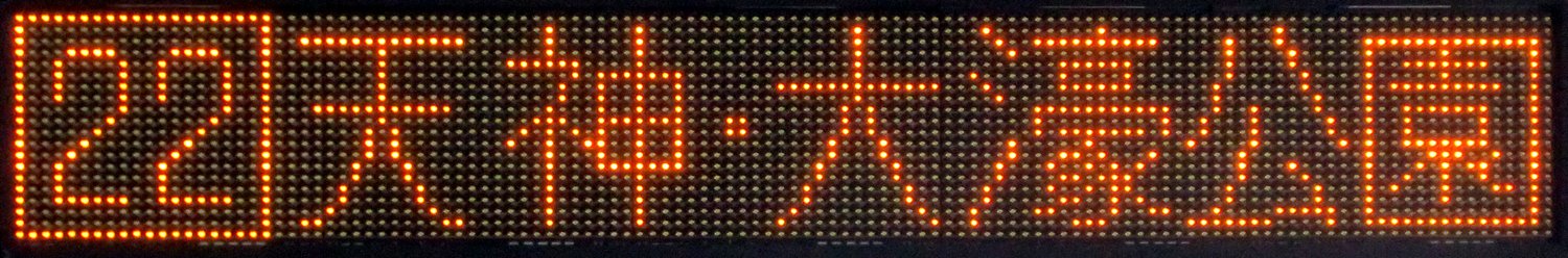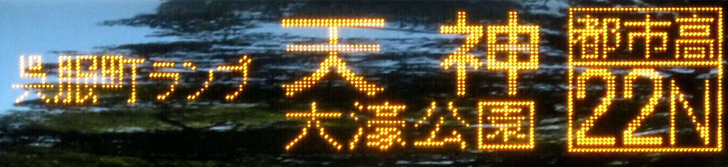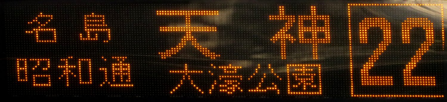 | 現存 |  | 行先: 22 大濠公園 経由地: 天神 表示区間: 西鉄香椎→中洲 撮影日: 2019-11-16 公開日: 2020-05-24 撮影者: nnr_1510 備考: 中点表記