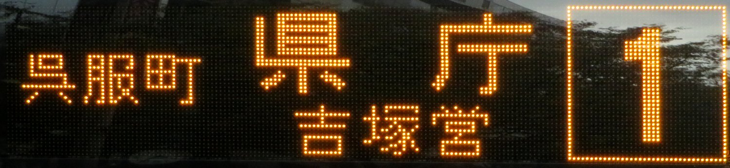 | 現存 |  | 行先: 1 吉塚営業所 経由地: 呉服町,県庁 表示区間: 川端町・博多座前→千代町(自治会館) 撮影日: 2019-11-20 公開日: 2020-05-23 撮影者: nnr_1510 備考: