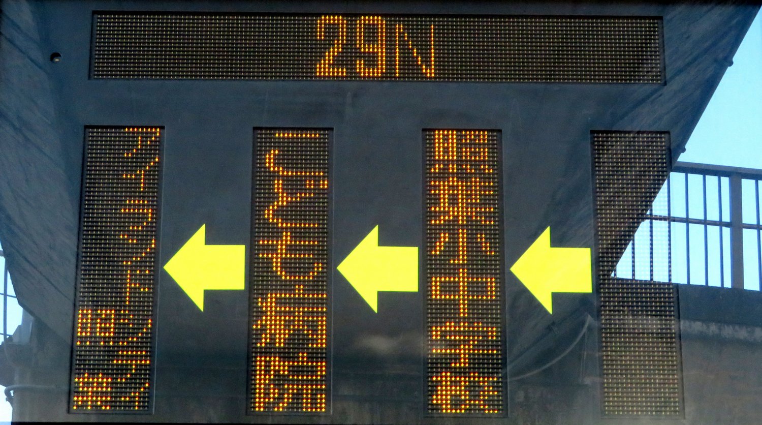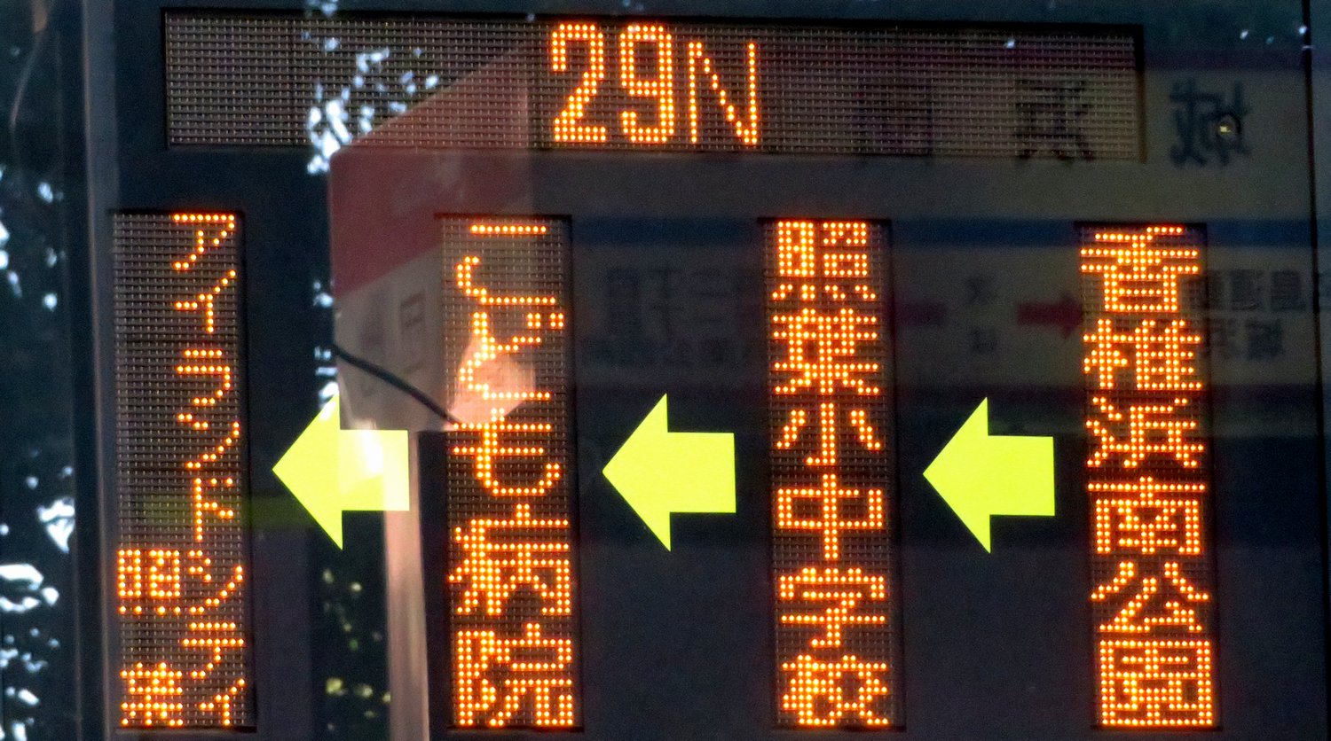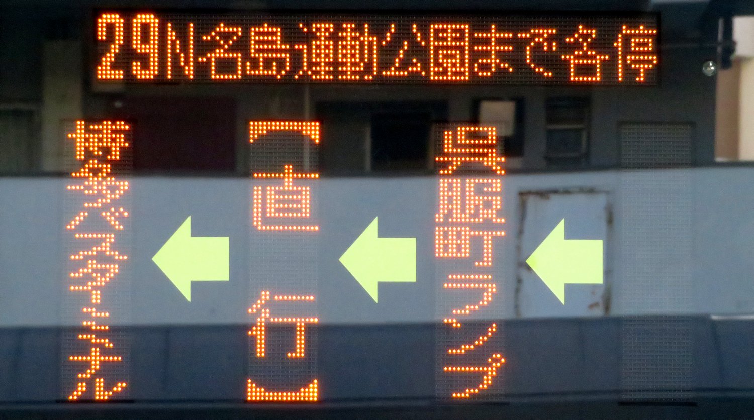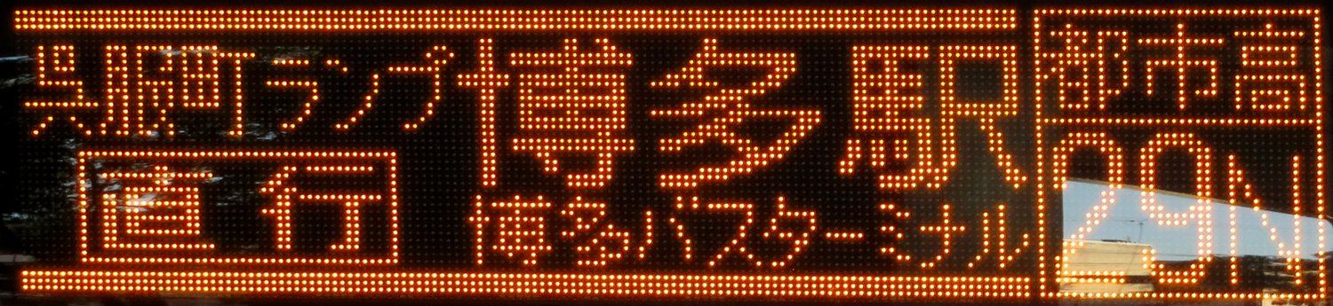 | 現存 |  | 行先: 29N 都市高 直行 博多バスターミナル1F 経由地: 呉服町ランプ,直行 表示区間: 香椎浜南公園前→名島運動公園前 撮影日: 2019-11-16 公開日: 2020-05-23 撮影者: nnr_1510 備考: 「直行」囲み表記/上下ライン