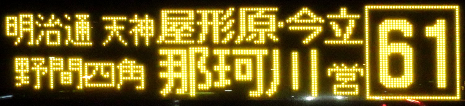 | 現存 |  | 行先: 61 今立・那珂川営業所 経由地: 明治通,天神,野間四角,屋形原,今立 表示区間: 箱崎三丁目→蓮池 撮影日: 2019-11-12 公開日: 2020-05-18 撮影者: nnr_1510 備考: 今立経由便/中点表記/二段表記