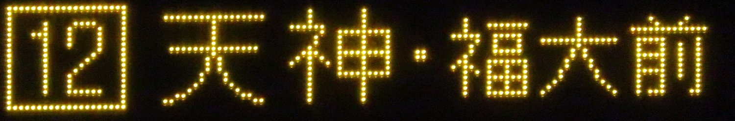 | 現存 |  | 行先: 12 片江営業所 経由地: 天神,福大前 表示区間: 吉塚営業所/博多バスターミナル1F→アクロス福岡・水鏡天満宮前 撮影日: 2019-11-12 公開日: 2020-05-18 撮影者: nnr_1510 備考: 行先表記なし/中点表記