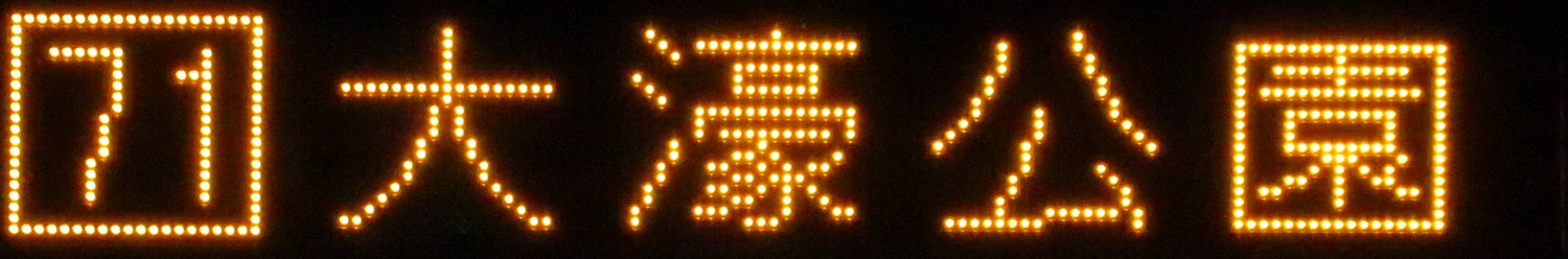 | 現存 |  | 行先: 71 大濠公園 経由地: 表示区間: 天神大和証券前(12)→大濠公園 撮影日: 2019-11-12 公開日: 2020-05-18 撮影者: nnr_1510 備考: