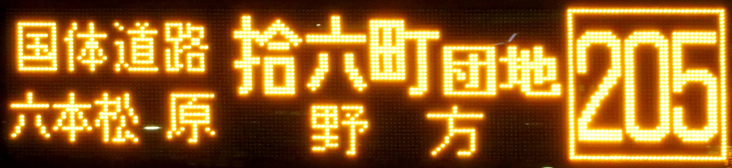 | 現存 |  | 行先: 205 野方(営業所) 経由地: 国体道路,六本松,原,拾六町団地 表示区間: 那の津四丁目→天神ソラリアステージ前(7) 撮影日: 2019-06-19 公開日: 2020-05-16 撮影者: nnr_1510 備考: