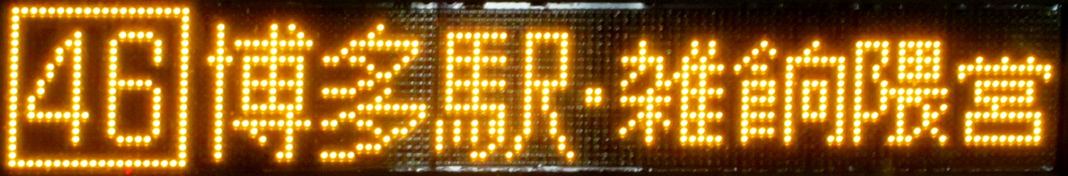 | 消滅 |  | 行先: 46 雑餉隈営業所 経由地: 博多駅 表示区間: 天神北(9)→駅前三丁目 撮影日: 2019-06-19 公開日: 2020-05-16 撮影者: nnr_1510 備考: ★★2020.03.21改正で廃止