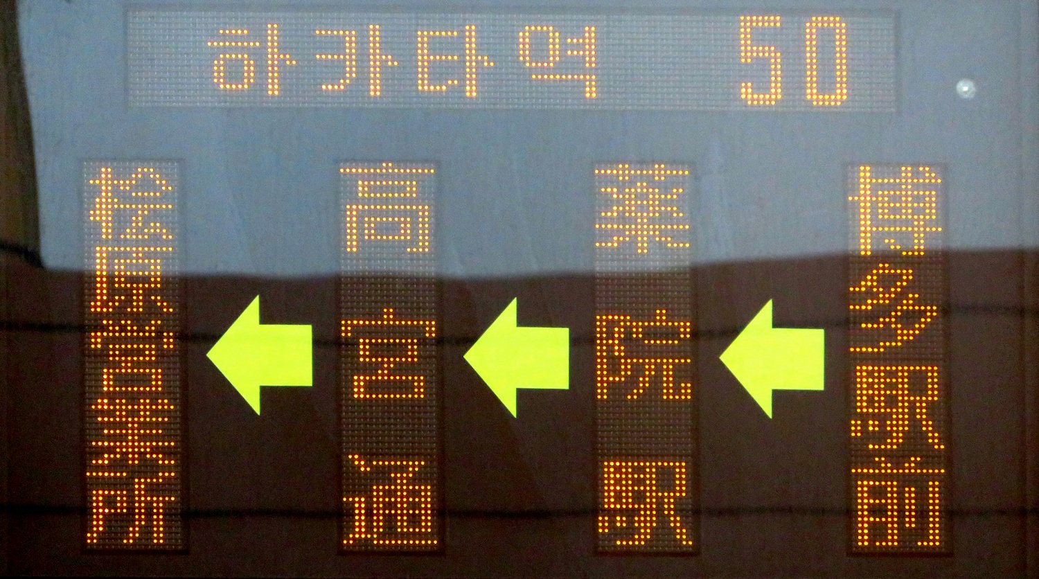 | 現存 |  | 行先: 50 桧原営業所 経由地: 博多駅前,薬院駅,高宮通 表示区間: 博多港国際ターミナル(中央ふ頭)→国際会議場サンパレス前 撮影日: 2019-06-19 公開日: 2020-05-16 撮影者: nnr_1510 備考: 韓国語表記あり(하카타 역:博多駅)/ドット欠け
