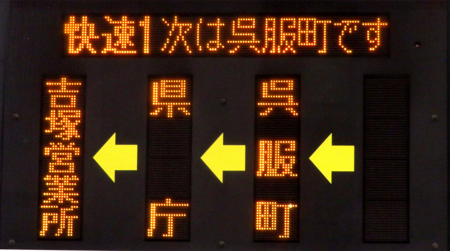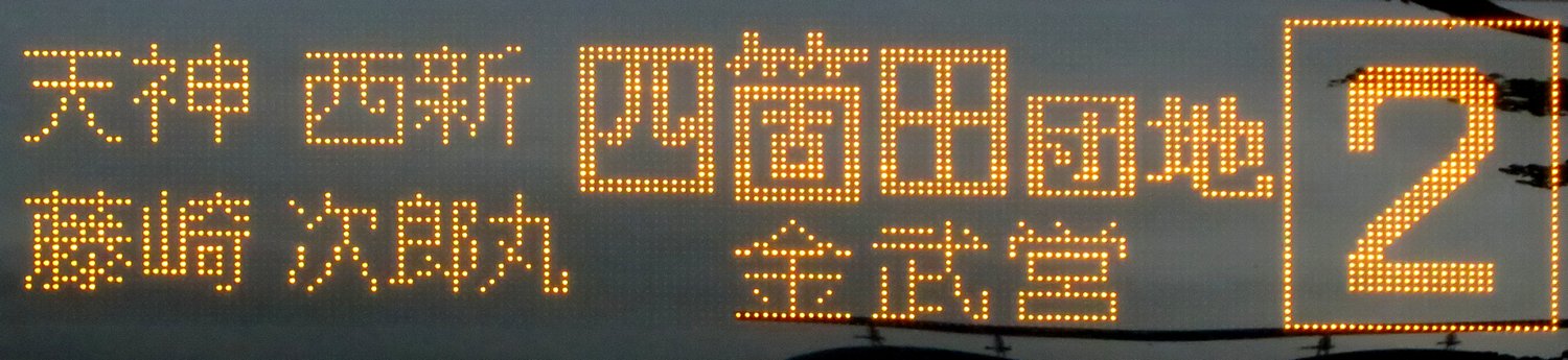 | 現存 |  | 行先: 1 快速 吉塚営業所 経由地: 呉服町,県庁 表示区間: 川端町・博多座前のみ 撮影日: 2019-06-19 公開日: 2020-05-16 撮影者: nnr_1510 備考: 次停留所案内:次は呉服町です