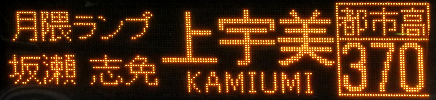 | 現存 |  | 行先: 370 都市高 上宇美 経由地: 月隈ランプ,坂瀬,志免 表示区間: 天神日銀前(19)→蓮池 撮影日: 2019-06-14 公開日: 2020-05-16 撮影者: nnr_1510 備考: ローマ字表記あり(KAMIUMI)