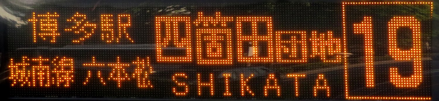 | 現存 |  | 行先: 19 四箇田団地 経由地: 博多駅,城南線,六本松 表示区間: 石城町→駅前一丁目 撮影日: 2019-06-13 公開日: 2020-05-12 撮影者: nnr_1510 備考: ★★ローマ字表記あり(SHIKATA)