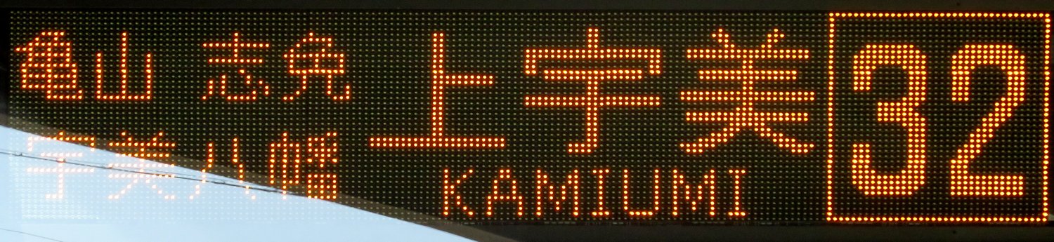 | 現存 |  | 行先: 32 上宇美 経由地: 亀山,志免,宇美八幡 表示区間: 博多バスターミナル1F→別府 撮影日: 2019-06-13 公開日: 2020-05-12 撮影者: nnr_1510 備考: ★ローマ字表記あり(KAMIUMI)/後日再撮影(乱反射)
