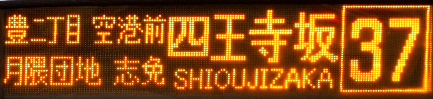 | 現存 |  | 行先: 37 四王寺坂 経由地: 豊二丁目,空港前,月隈団地,志免 表示区間: 博多バスターミナル1F→豊一丁目 撮影日: 2019-11-29 公開日: 2020-05-12 撮影者: nnr_1510 備考: ローマ字表記あり(SHIOUJIZAKA)