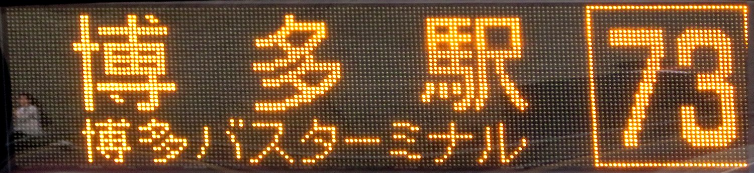 | 現存 |  | 行先: 73 博多バスターミナル1F 経由地: 表示区間: ??→博多バスターミナル1F 撮影日: 2019-06-13 公開日: 2020-05-12 撮影者: nnr_1510 備考: