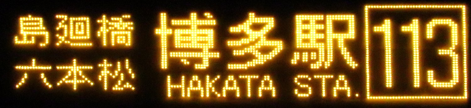 | 現存 |  | 行先: 113 博多駅新三井ビル前 経由地: 島廻橋,六本松 表示区間: 桧原営業所→油山/片江営業所→油山団地前 撮影日: 2019-06-07 公開日: 2020-05-10 撮影者: nnr_1510 備考: