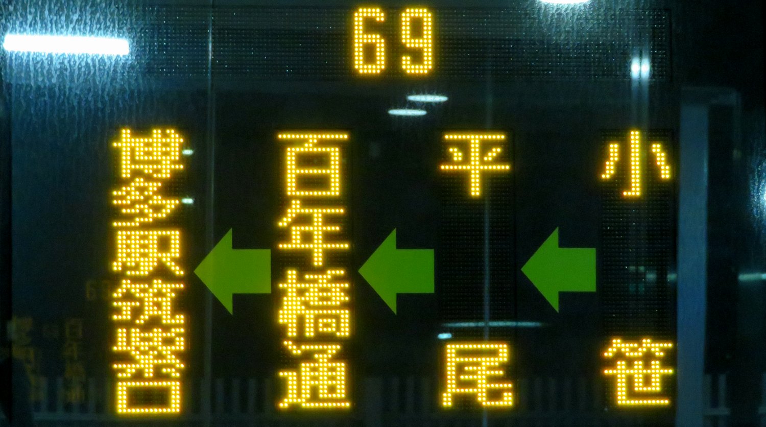 | 現存 |  | 行先: 69 博多駅筑紫口 経由地: 小笹,平尾,百年橋通 表示区間: 桧原営業所→下長尾 撮影日: 2019-06-07 公開日: 2020-05-10 撮影者: nnr_1510 備考: