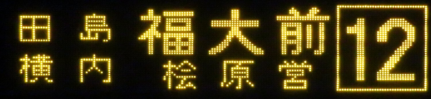 | 現存 |  | 行先: 12 桧原営業所 経由地: 田島,横内,福大前 表示区間: 六本松(福銀前)→梅光園 撮影日: 2019-06-07 公開日: 2020-05-10 撮影者: nnr_1510 備考: ★