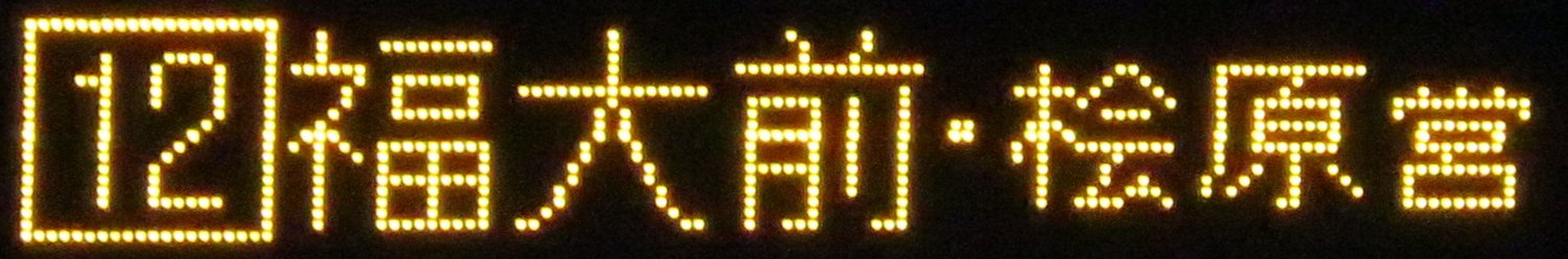| 現存 |  | 行先: 12 桧原営業所 経由地: 福大前 表示区間: 六本松(福銀前)→東七隈 撮影日: 2019-06-07 公開日: 2020-05-10 撮影者: nnr_1510 備考: 中点表記