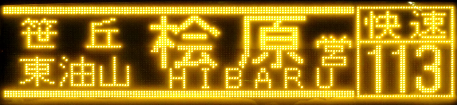 | 現存 |  | 行先: 113 快速 桧原営業所 経由地: 笹丘,東油山 表示区間: 六本松(福銀前)のみ 撮影日: 2019-06-07 公開日: 2020-05-10 撮影者: nnr_1510 備考: 上下ライン/ローマ字表記あり(HIBARU)