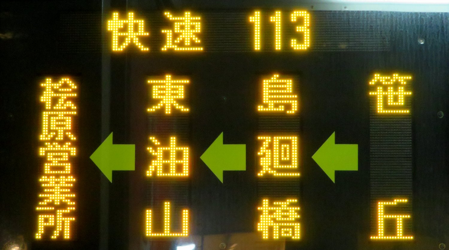 | 現存 |  | 行先: 113 快速 桧原営業所 経由地: 笹丘,島廻橋,東油山 表示区間: 六本松(福銀前)のみ 撮影日: 2019-06-07 公開日: 2020-05-10 撮影者: nnr_1510 備考:
