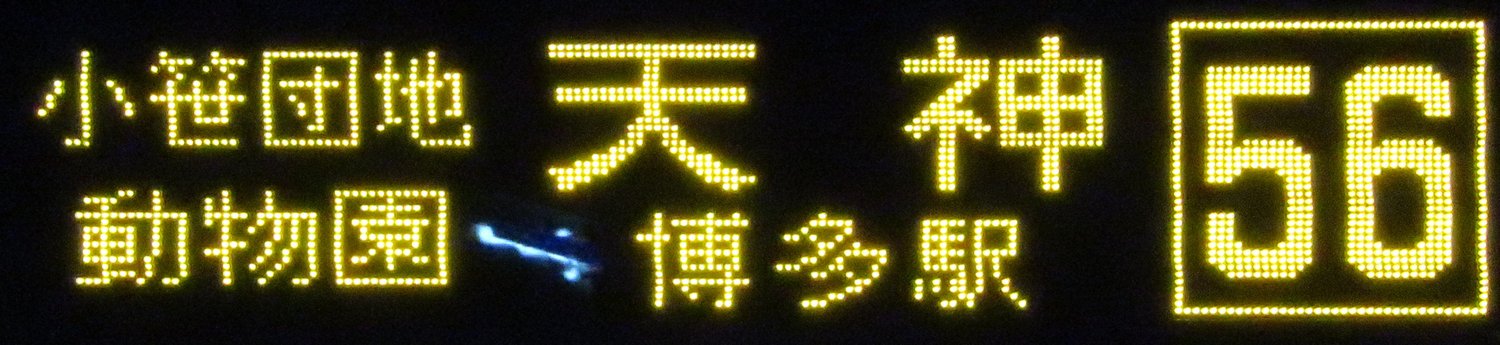 | 現存 |  | 行先: 56 博多駅新三井ビル前 経由地: 小笹団地,動物園,天神 表示区間: 桧原営業所/柏原営業所→小笹南口 撮影日: 2019-06-07 公開日: 2020-05-10 撮影者: nnr_1510 備考: