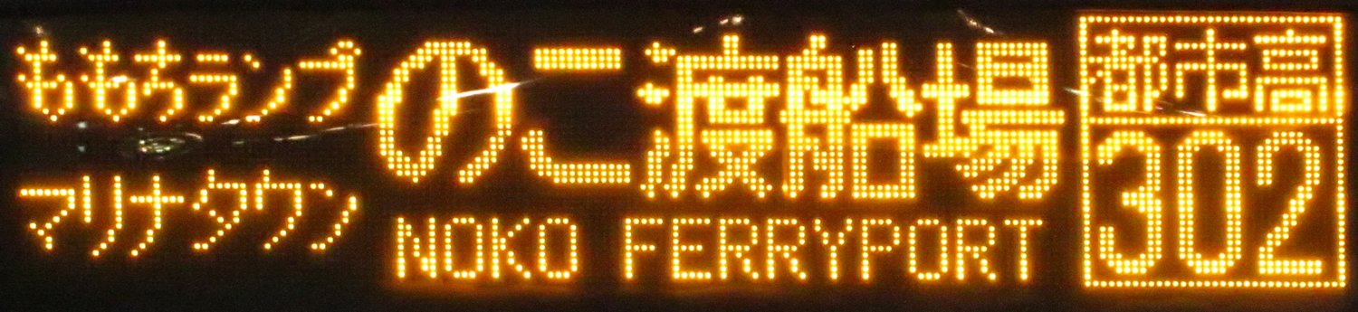 | 現存 |  | 行先: 302 都市高 能古渡船場 経由地: ももちランプ,マリナタウン 表示区間: 天神南→那の津口(ボートレース福岡入口) 撮影日: 2019-05-30 公開日: 2020-05-08 撮影者: nnr_1510 備考: