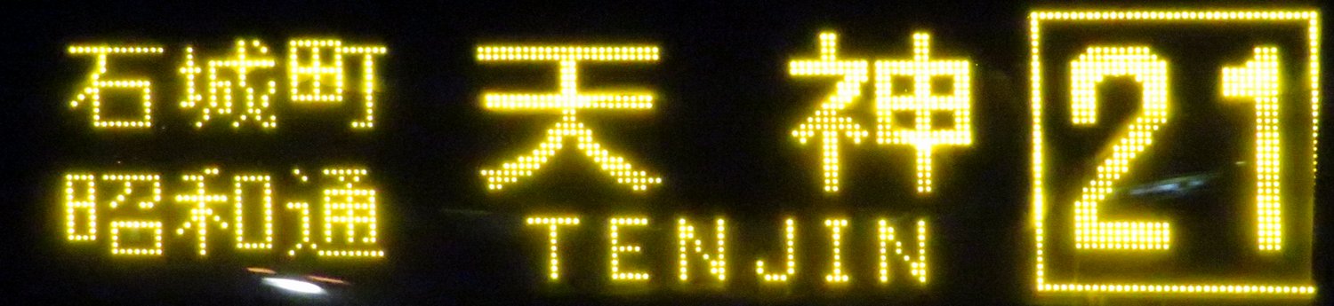 | 現存 |  | 行先: 21 天神三丁目(15) 経由地: 石城町,昭和通 表示区間: 名島→築港口 撮影日: 2019-05-28 公開日: 2020-05-06 撮影者: nnr_1510 備考: