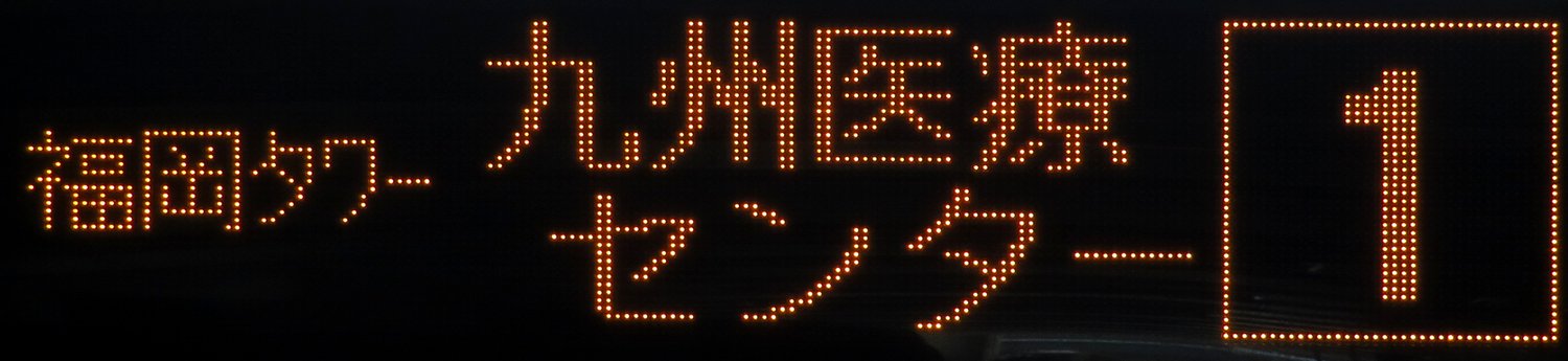 | 現存 |  | 行先: 1 九州医療センター 経由地: 福岡タワー 表示区間: 藤崎→ももち浜クリニックゾーン前 撮影日: 2019-05-26 公開日: 2020-05-04 撮影者: nnr_1510 備考: