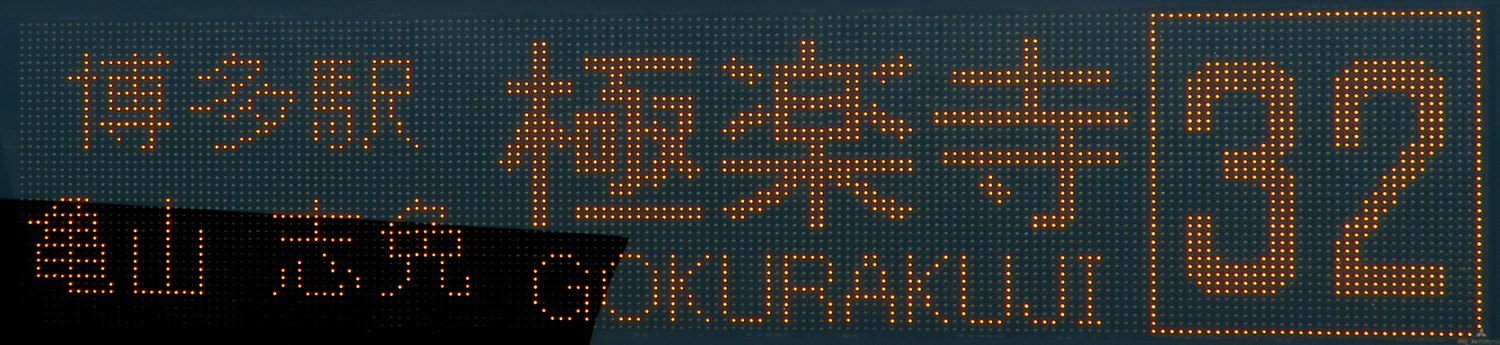 | 現存 |  | 行先: 32 極楽寺 経由地: 博多駅,亀山,志免 表示区間: 大濠公園→駅前一丁目 撮影日: 2019-05-26 公開日: 2020-05-05 撮影者: nnr_1510 備考: ローマ字表記あり(GOKURAKUJI)