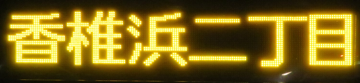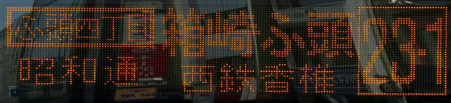 | 現存 |  | 行先: 23-1 西鉄香椎 経由地: ふ頭 表示区間: 大濠公園→ふ頭五丁目 撮影日: 2019-05-23 公開日: 2020-05-01 撮影者: nnr_1510 備考: 中点表記