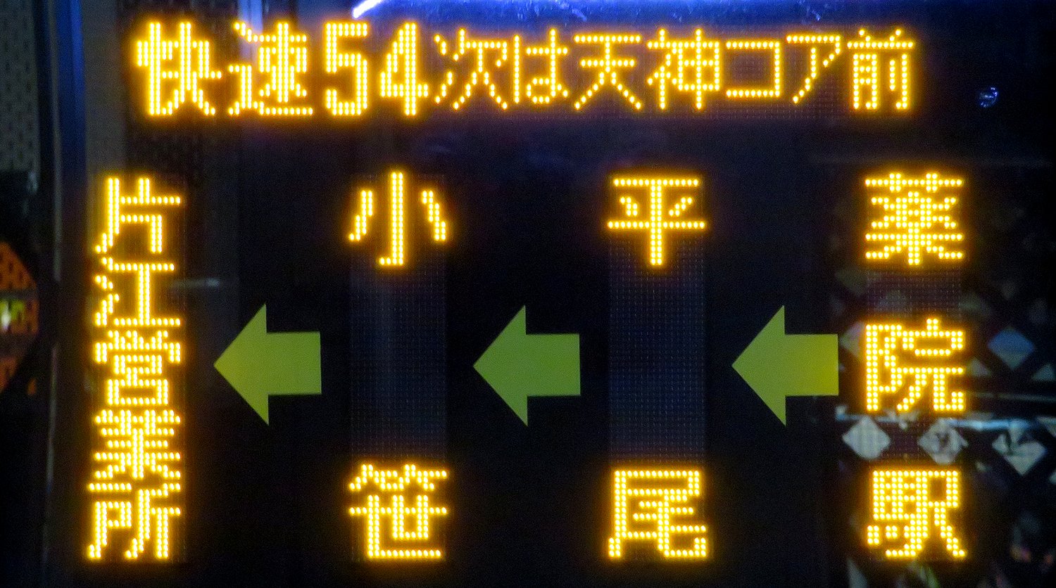 | 現存 |  | 行先: 54 快速 片江営業所 経由地: 薬院駅,平尾,小笹 表示区間: 天神ソラリアステージ前(7)のみ 撮影日: 2019-05-23 公開日: 2020-05-01 撮影者: nnr_1510 備考: ★次停留所案内:次は天神南