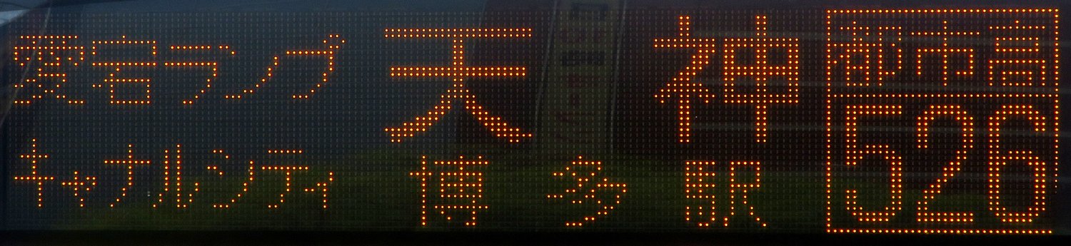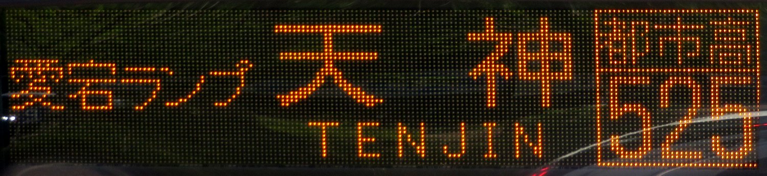 | 現存 |  | 行先: 526 都市高 博多駅新三井ビル前 経由地: 天神 表示区間: 野方(営業所)→愛宕一丁目(都市高速下) 撮影日: 2019-05-23 公開日: 2020-04-30 撮影者: nnr_1510 備考: 中点表記/次の那の津口(ボートレース福岡入口)より68番として運行
