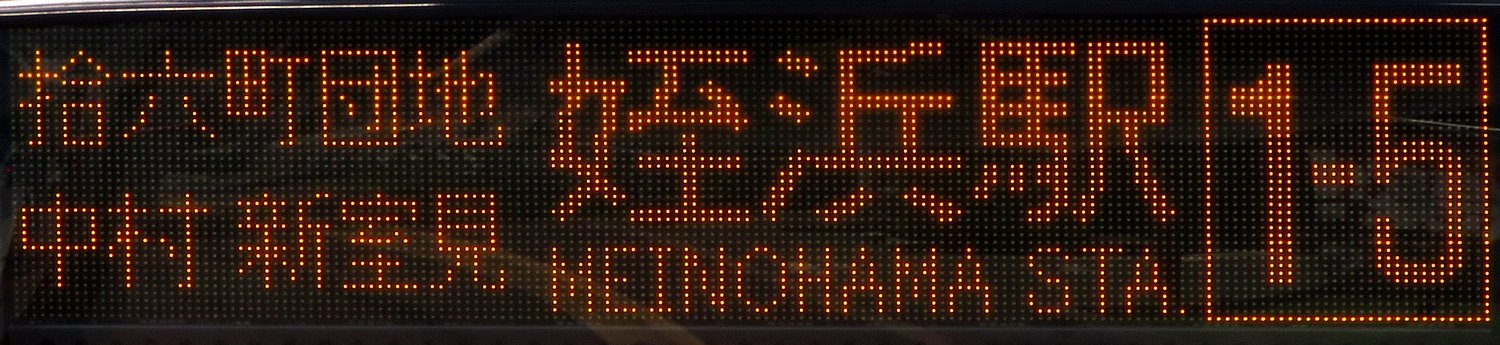 | 現存 |  | 行先: 1-5 姪浜駅南口 経由地: 新室見 表示区間: 全区間(野方(営業所)→姪浜駅南口) 撮影日: 2019-05-23 公開日: 2020-04-30 撮影者: nnr_1510 備考: 中点表記/姪浜駅南口連続運行便は内浜ウエストコート東までの表示