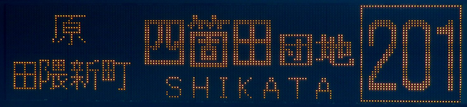 | 現存 |  | 行先: 201 田隈新町・四箇田団地 経由地: 原,田隈新町 表示区間: 六本松(福銀前)→四箇田団地 撮影日: 2019-05-23 公開日: 2020-01-15 撮影者: nnr_1510 備考: 田隈新町経由便