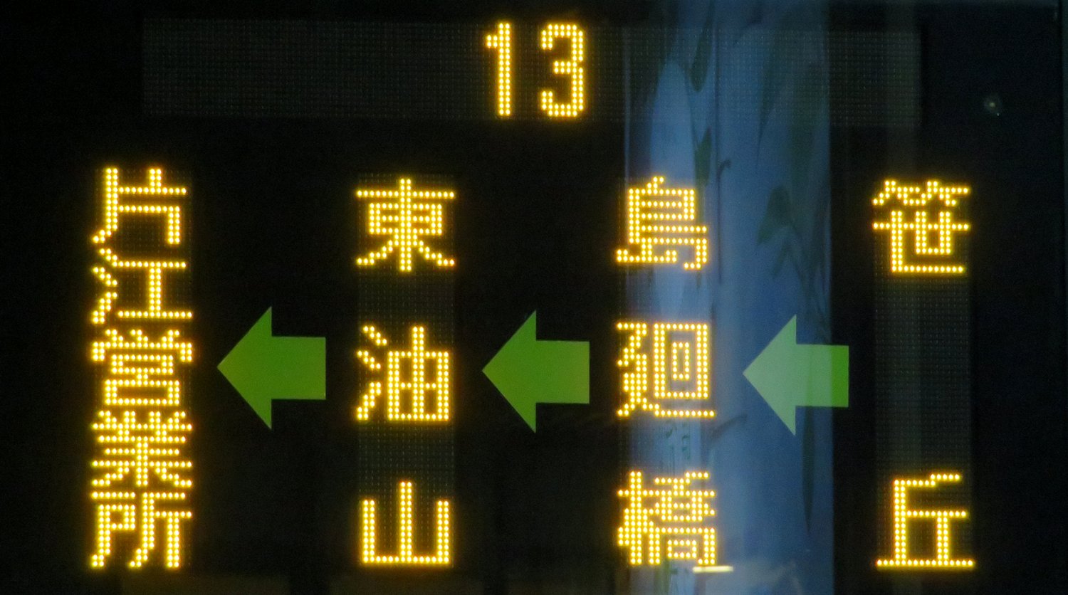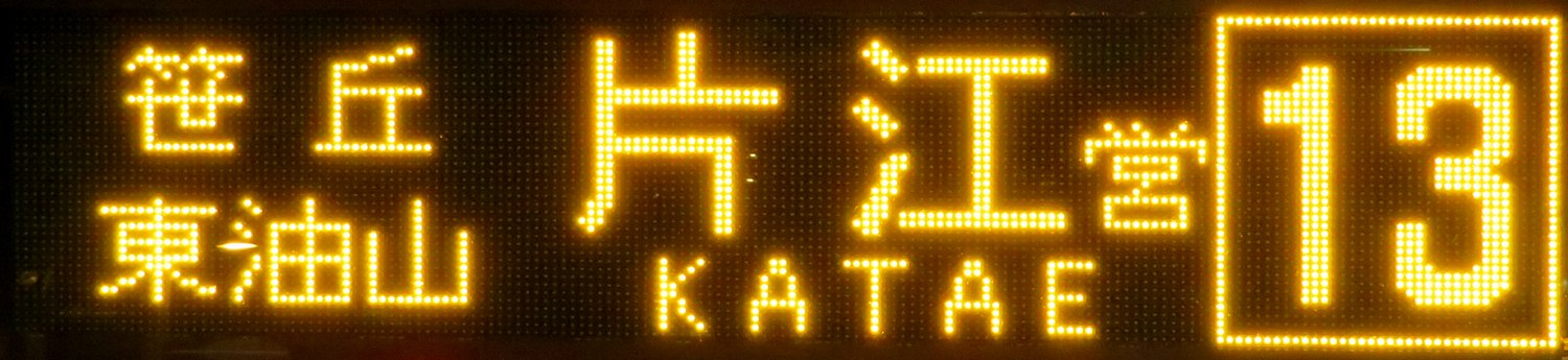 | 現存 |  | 行先: 13 片江営業所 経由地: 笹丘,東油山 表示区間: 六本松(福銀前)→梅光園口 撮影日: 2019-05-16 公開日: 2019-12-16 撮影者: nnr_1510 備考: ローマ字表記あり(KATAE)