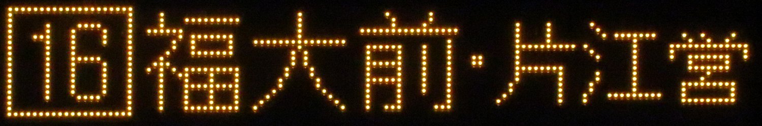 | 現存 |  | 行先: 16 片江営業所 経由地: 福大前 表示区間: 博多駅前B?→?? 撮影日: 2019-05-16 公開日: 2019-12-16 撮影者: nnr_1510 備考: 中点表記