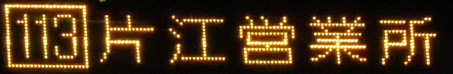 | 現存 |  | 行先: 113 片江営業所 経由地: 表示区間: 全区間?(博多バスターミナル→片江営業所) 撮影日: 2019-05-16 公開日: 2019-12-16 撮影者: nnr_1510 備考: 後日再撮影予定(歪み)