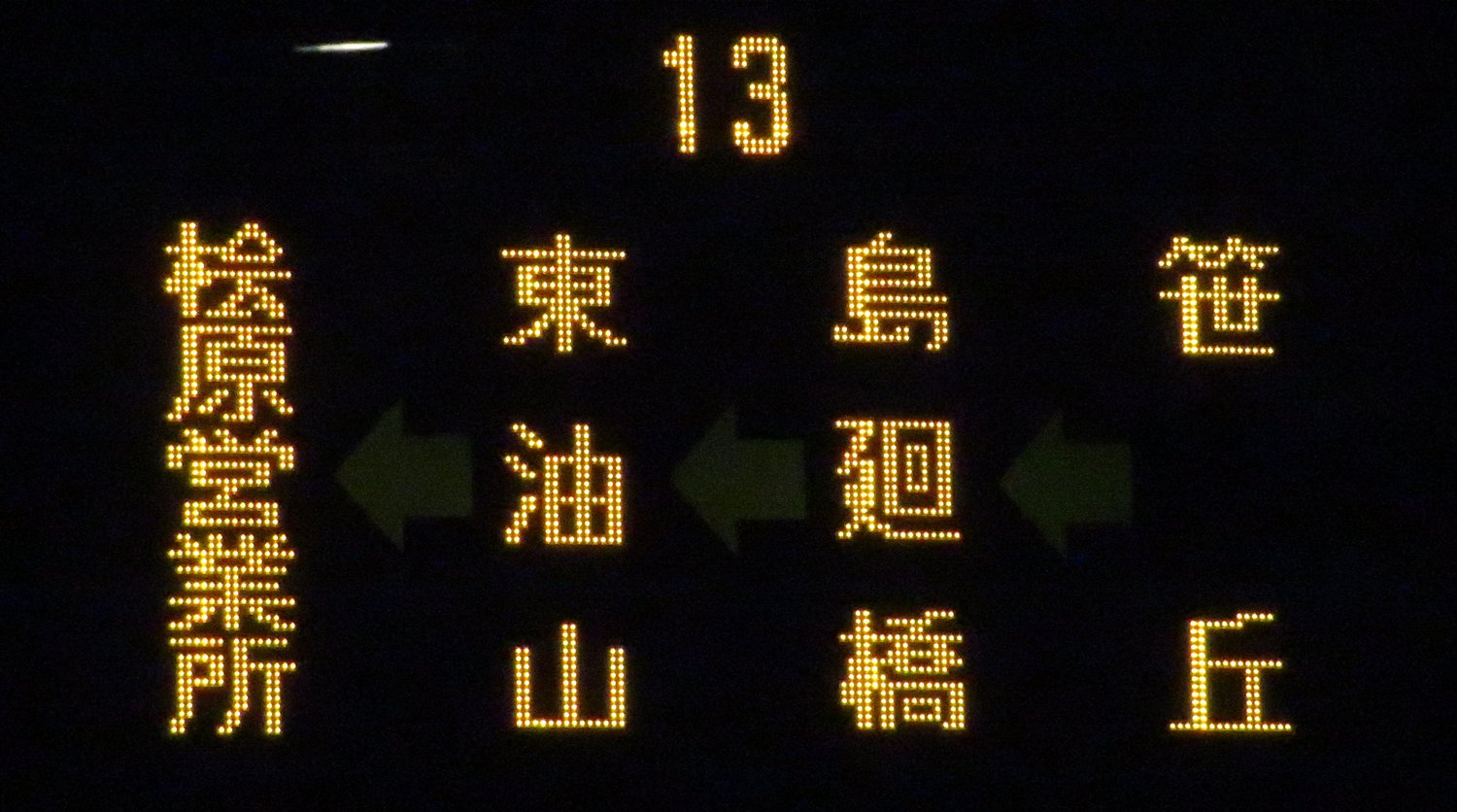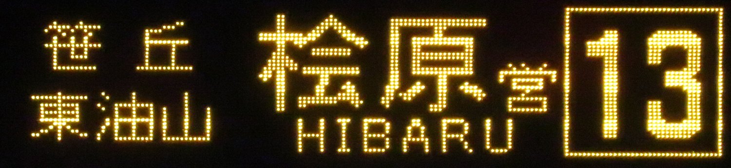 | 現存 |  | 行先: 13 桧原営業所 経由地: 笹丘,東油山 表示区間: 六本松(福銀前)→桧原営業所 撮影日: 2019-05-16 公開日: 2019-12-16 撮影者: nnr_1510 備考: 片江営業所運行便/ローマ字表記あり(HIBARU)