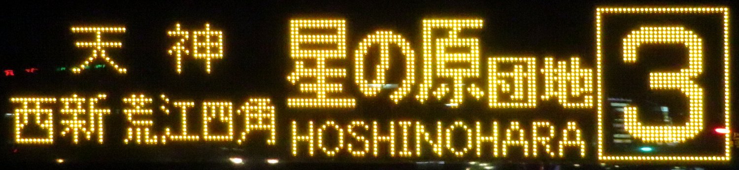 | 現存 |  | 行先: 3 星の原団地 経由地: 天神,西新,荒江四角 表示区間: 川端町・博多座前→アクロス福岡・水鏡天満宮前 撮影日: 2019-05-16 公開日: 2019-12-13 撮影者: nnr_1510 備考: