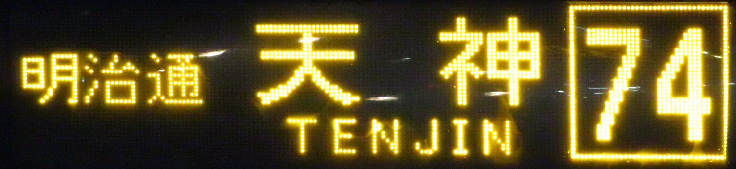 | 現存 |  | 行先: 74 天神新天町入口(11) 経由地: 明治通 表示区間: 妙見?→天神新天町入口(11) 撮影日: 2019-05-16 公開日: 2019-12-13 撮影者: nnr_1510 備考: