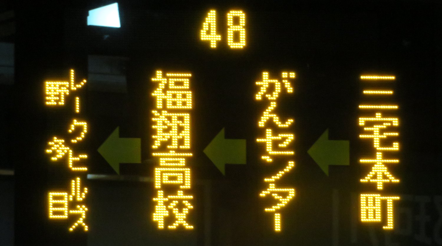 | 現存 |  | 行先: 48 レークヒルズ野多目 経由地: 三宅本町,がんセンター,福翔高校 表示区間: 西鉄大橋駅→地禄神社 撮影日: 2019-11-25 公開日: 2020-06-10 撮影者: nnr_1510 備考: 二段表記