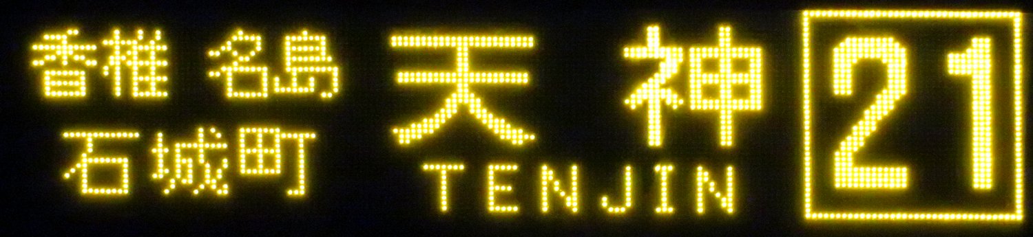 | 現存 |  | 行先: 21 天神三丁目(15) 経由地: 香椎,名島,石城町 表示区間: 和白→福岡女子大前 撮影日: 2019-05-16 公開日: 2019-12-10 撮影者: nnr_1510 備考:
