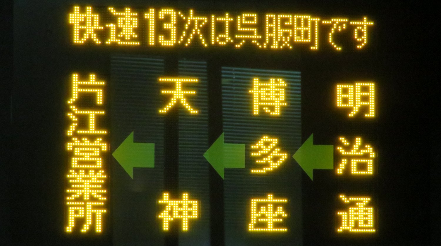 | 現存 |  | 行先: 1 快速 吉塚営業所 経由地: 県庁 表示区間: 千代町(自治会館)のみ 撮影日: 2019-05-16 公開日: 2019-12-09 撮影者: nnr_1510 備考: