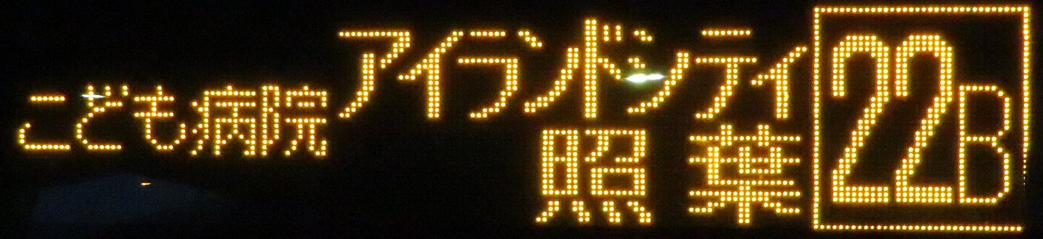 | 現存 |  | 行先: 22B アイランドシティ照葉 経由地: こども病院 表示区間: イオンモール香椎浜→香椎照葉五丁目? 撮影日: 2019-05-15 公開日: 2019-12-06 撮影者: nnr_1510 備考: ★二段表記