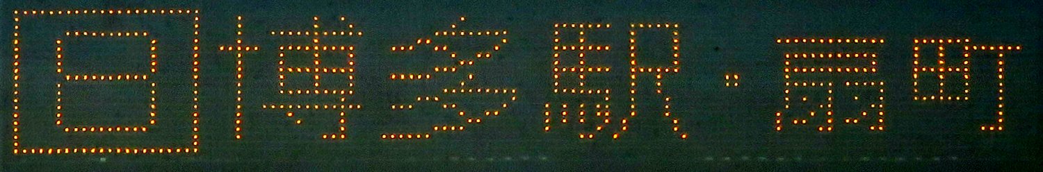 | 現存 |  | 行先: 8 扇町 経由地: 博多駅 表示区間: 六本松(福銀前)→駅前一丁目 撮影日: 2019-05-11 公開日: 2019-12-03 撮影者: nnr_1510 備考: 中点表記